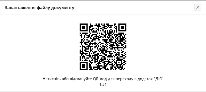 Також можливо додати цифрову копію паспорта за допомогою додатку "ДІЯ" у разі, якщо паспорт присутній в переліку документів в додатку. Для цього необхідно натиснути на кнопку "ДІЯ", відсканувати QR-код за допомогою Вашого мобільного пристрою із додатка "ДІЯ" або натиснути на QR-код для переходу в додаток "ДІЯ" якщо Ви працюєте з мобільного пристрою та погодитися із наданням копії. У разі успіху копія паспорта з’явиться в переліку доданих документів.